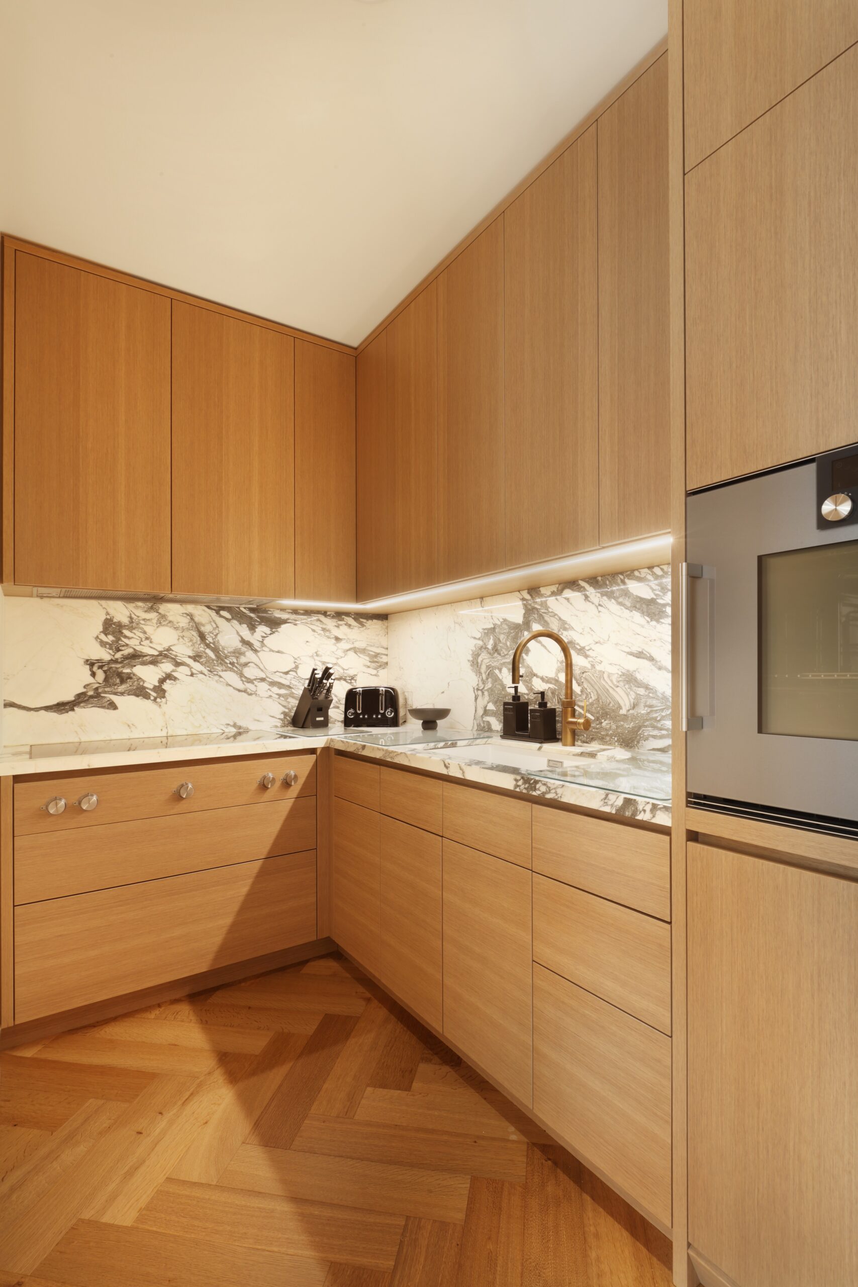 This kitchen was crafted in one of our family-owned workshops in Austria. Our artisans represent generations of knowledge that comes together within a kitchen like this. Our production-led process is ideal for clients who already have developed a design and require expertise in joinery and execution. We are pleased our craftsmanship is being recognised by the iconic Architectural Digest.