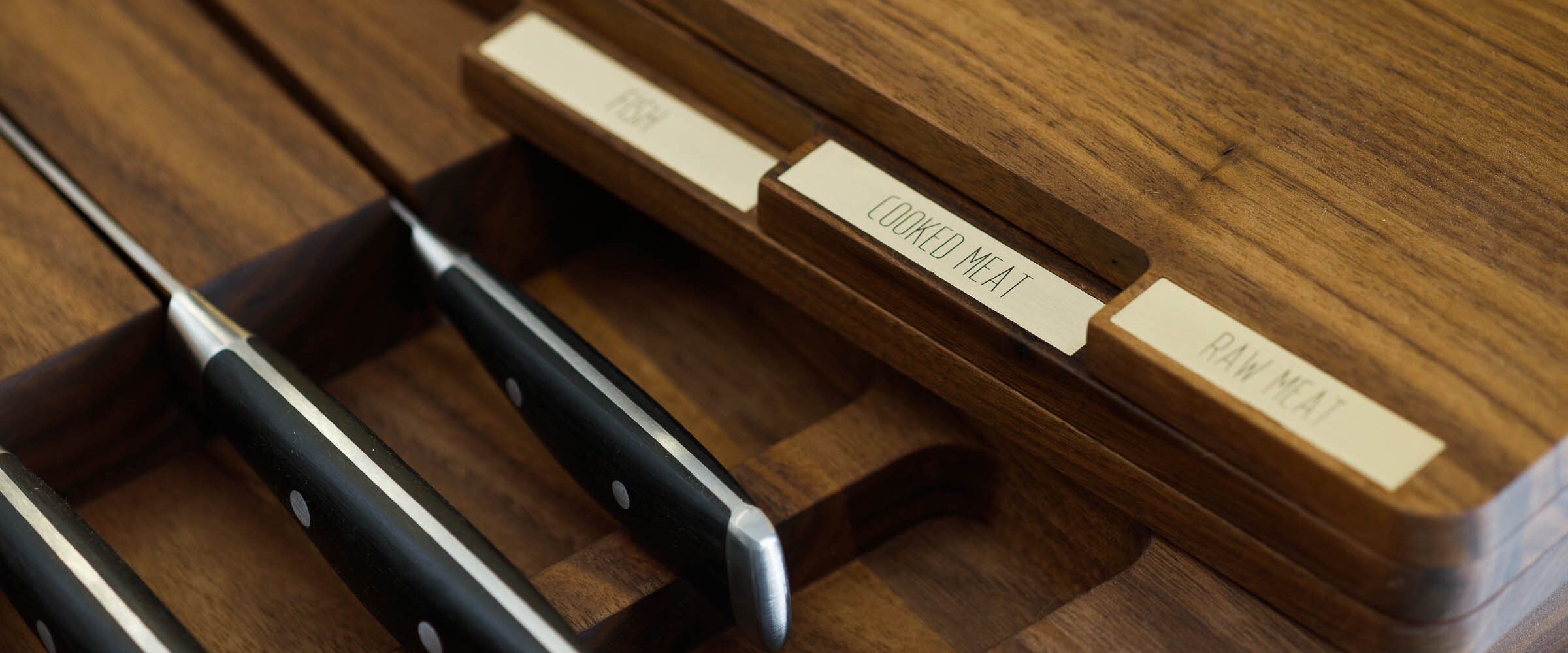 Drawer inserts are made especially for the client’s most used utensils. We think about how much each object will be reached for. Our bespoke slots for kitchen knives keep tools organised and safe.