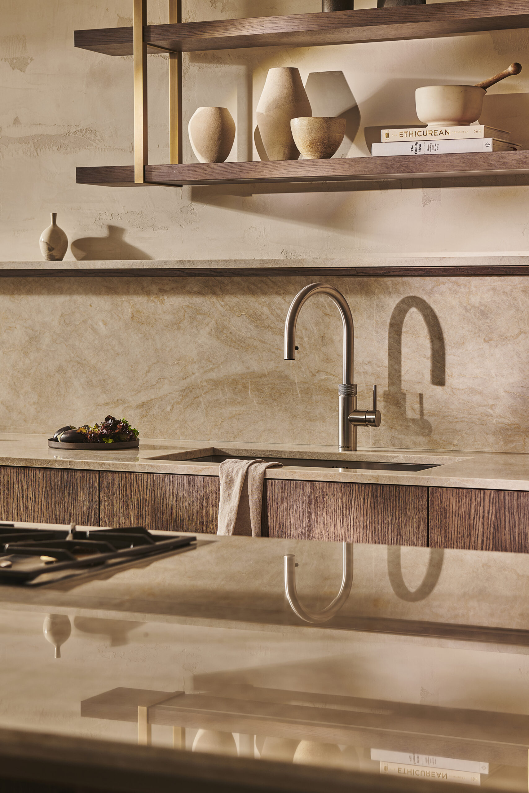 The award winning kitchen (design et al 2025) is a beautiful representation of Lanserring’s way of crafting elevated, bespoke solutions. The countertops made entirely of quartzite act as the focal point of the space. A design crafted with the clients daily rituals and personal taste in mind throughout.