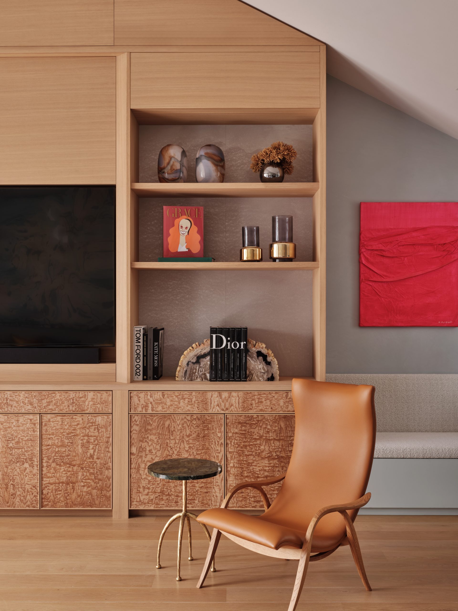 Working in close collaboration with Taylor Howes, we brought the client’s vision to life through a stunning array of bespoke joinery. Our craftsmanship shines throughout the home, starting in the Master Bedroom, where we meticulously created the wardrobes, open shelving, vanity, banquette, headboard, and room skirting—each piece carefully tailored to complement the space.